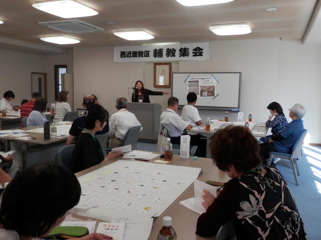 『こころの練習帳』を知っている方も知らなかった方も、改めて実践項目の1つ1つを確認することで、自ずと自身の信心生活を振り返り、これからの輔教としての取り組みを求め合う機会となりました。その後、班別懇談を行い、それぞれの信心体験や活動内容を分かち合いました。
